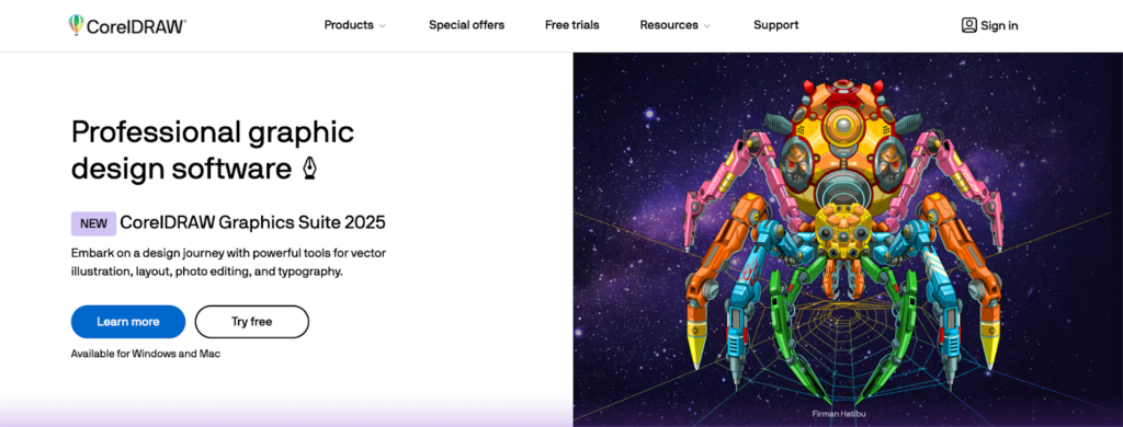 CorelDRAW excels in vector and print design, illustration, and detailed artwork. Its suite of tools includes powerful features for vector illustration, layout, photo editing, and typography—and 87% of users say they’d recommend it to others.