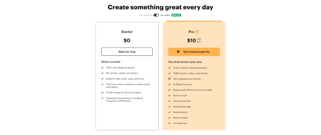 <img alt=”VistaCreate’s Starter and Pro plans”>