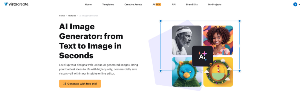 If you create a brand kit, you can automatically apply your colors, fonts, and logos to all visuals—including those generated with the VistaCreate AI Image Generator. All images on the platform, even AI-generated ones, are fully licensed for commercial use.